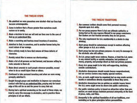 Set of Twelve Steps and Twelve Traditions window shade displays. Includes a chain for easy hanging. Each shade has a dimension of 3 ft. by 5 ft.